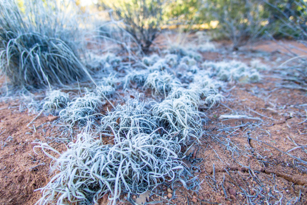 Having arrived to the campsite at night, the rising sun brought our first sight of the magical landscape. A giant sandstone finger pointing to the heavens glowed red with first light, and we watched it shrink into the horizon as we scraped frost from our windshield and headed into the park.
