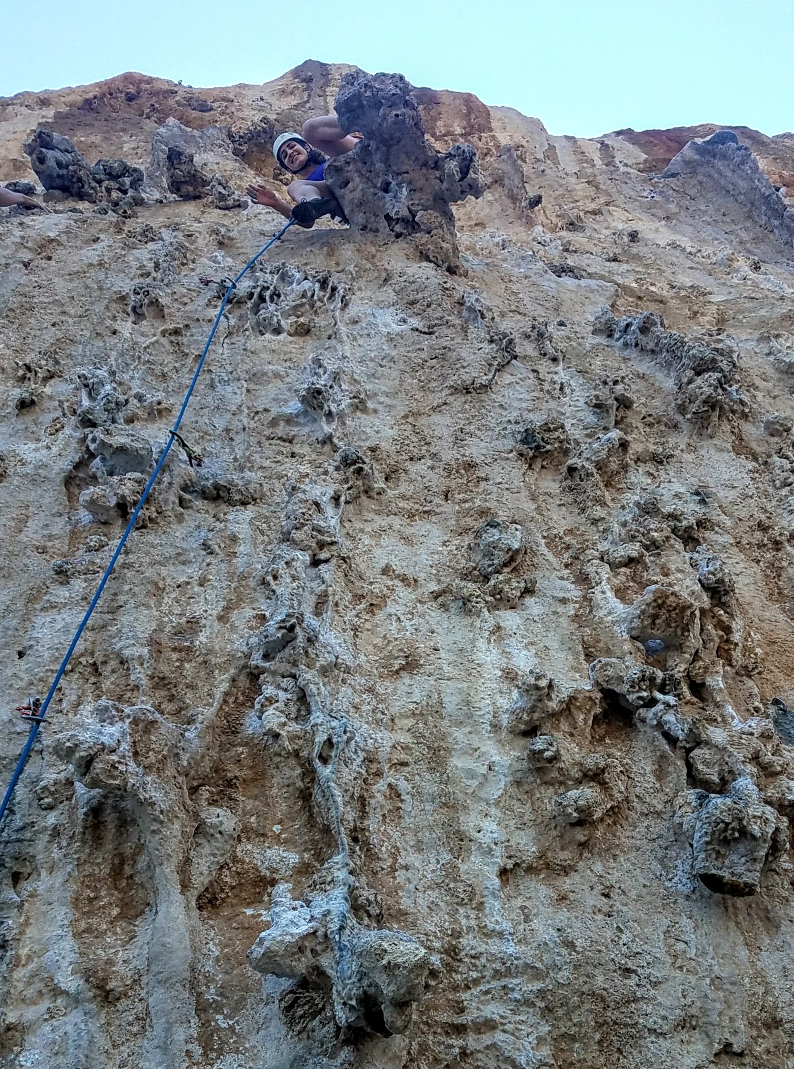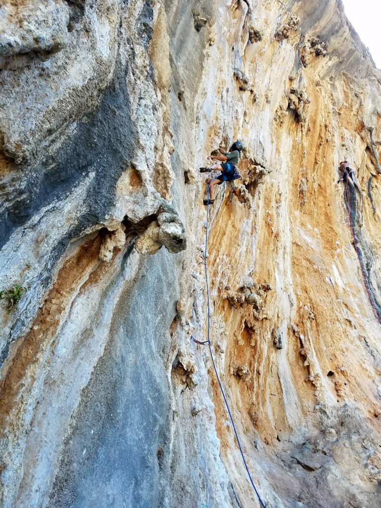 Evening climbing in “Grand Grotta.” We almost missed the sunset so we practically ran up the slope, and I haven’t climbed this fast since Horseshoe hell! Pic from the anchors of “Happy Girlfriend” (5c)