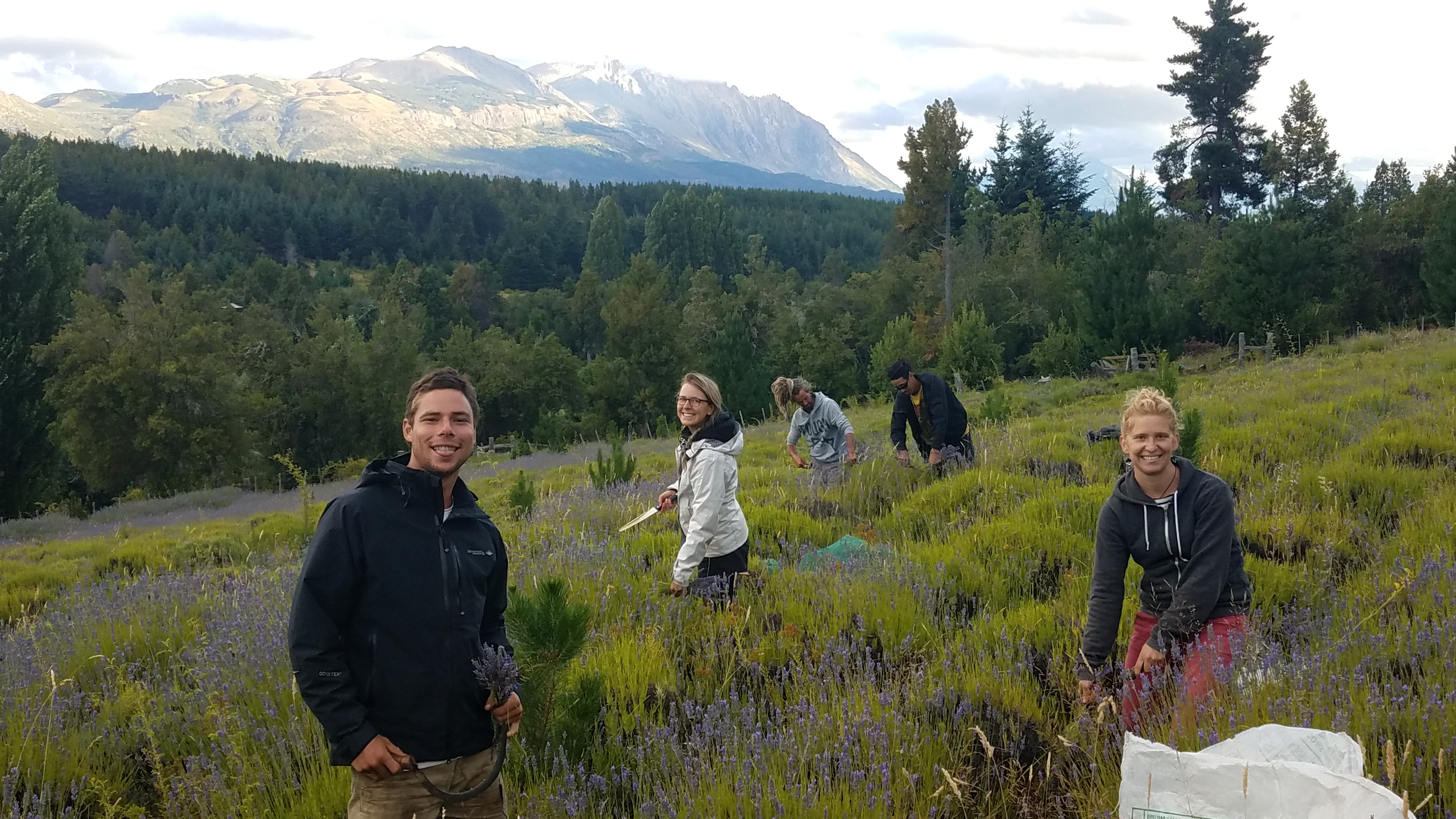 We came to El Bolson because there was a volunteering posting for a permaculture project that we were interested in. Through a bit of what is maybe bad luck or maybe just the way things are, we ended up helping this guy pick lavender for a couple days. Sickles in hand, we moved through the field, shooing the bumblebees and gathering flowers. It wasn’t all bad though – for starters, the view from the field was breathtaking! The property was near a river, and a plunge into the cool river water was quite a wonderful feeling. The other volunteers were all awesome to hang out with, and Mel and I cooked us quite a great taco dinner, a bit of California/Mexico to share with the south. We made the tortillas from flour we ground earlier that day (as in we put whole grain into a little grinding machine), which was a pretty neat feeling. Also our dirty clothes smelled like lavender, so were they really dirty?