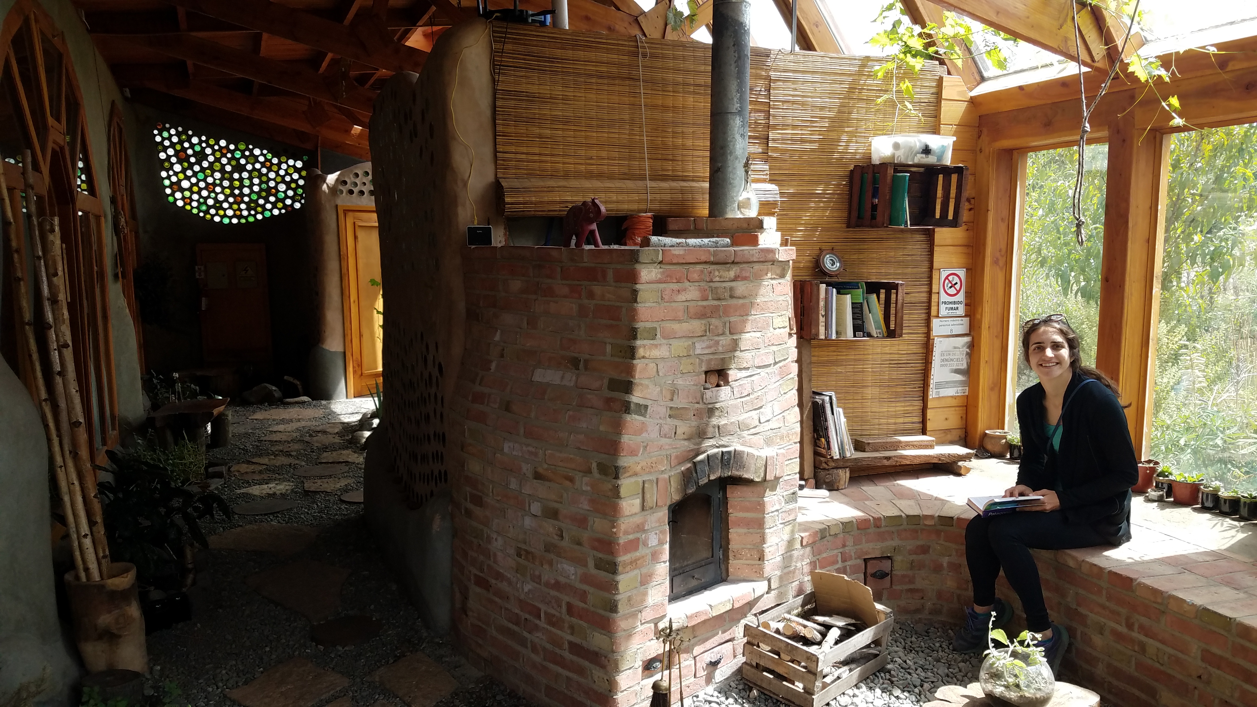 After our little lavender adventure, our stomachs were feeling a bit strange, so we stayed at a really nice cabin for a couple days and rested up. The cabin was at the foot of El Piltriquitron, a name which means “mountain that hangs from the clouds.” The mountain and its wild jagged ridge glowed red in the sunset light as we soaked in our in-room jacuzzi. Then we moved to a rad “Earthship” hostel when we were feeling better. The “Earthship” was constructed a couple years before in just two months by a group of 70 volunteers. The building harvests rain and sunlight in such a way that the temperature in the building is comfortable both when it is hot or cold outside, and the bathrooms run entirely on rainwater which is recycled to grow plants. Our beds were in a little yurt next to the earthship, and the hostel provided solid group vegan dinners. The space also had a large vegetable garden, a greenhouse for tomatoes, apple trees, and many cozy nooks to relax in. It was a wonderful space and a great reminder that it is possible to live sustainably.